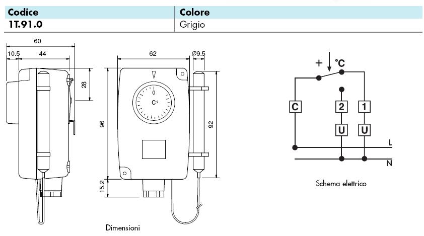 Termostato meccanico con ampio campo di regolazione.