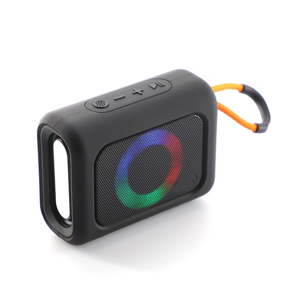E' compatto, con batteria ricaricabile ed effetti luce attivabili a piacimento. La finitura gommata lo rende gradevole al tatto. E' in gradi di leggere brani Mp3 da chiavette USB o schede microSD.