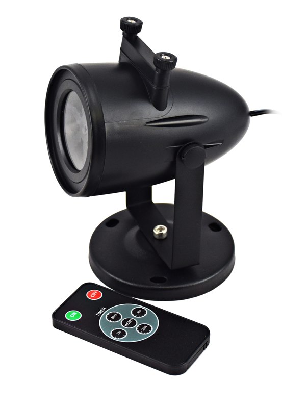 Proiettore a led ideato per utilizzo outdoor. E' possibile inserire una delle tre cartucce contenenti 3 diversi tipi di pellicole (halloween, fiocchi di neve e cuori di San Valentino).