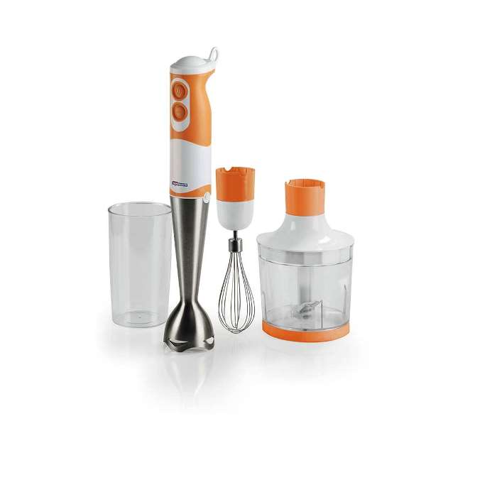 - Frullatore a immersione con accessorio sbattitore: una frusta in acciaio inox ideale per sbattere, montare e miscelare.